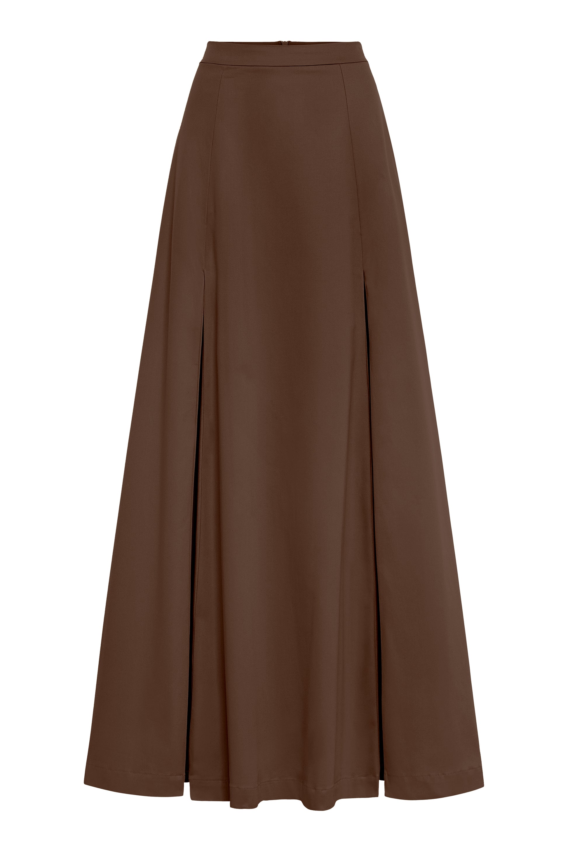The Gables Skirt is a structured, high-waisted maxi with a timeless silhouette. Two front slits bring a modern edge to its classic design, creating a look that feels both fresh and refined. Designed with side pockets and a back zip closure for a seamless fit.