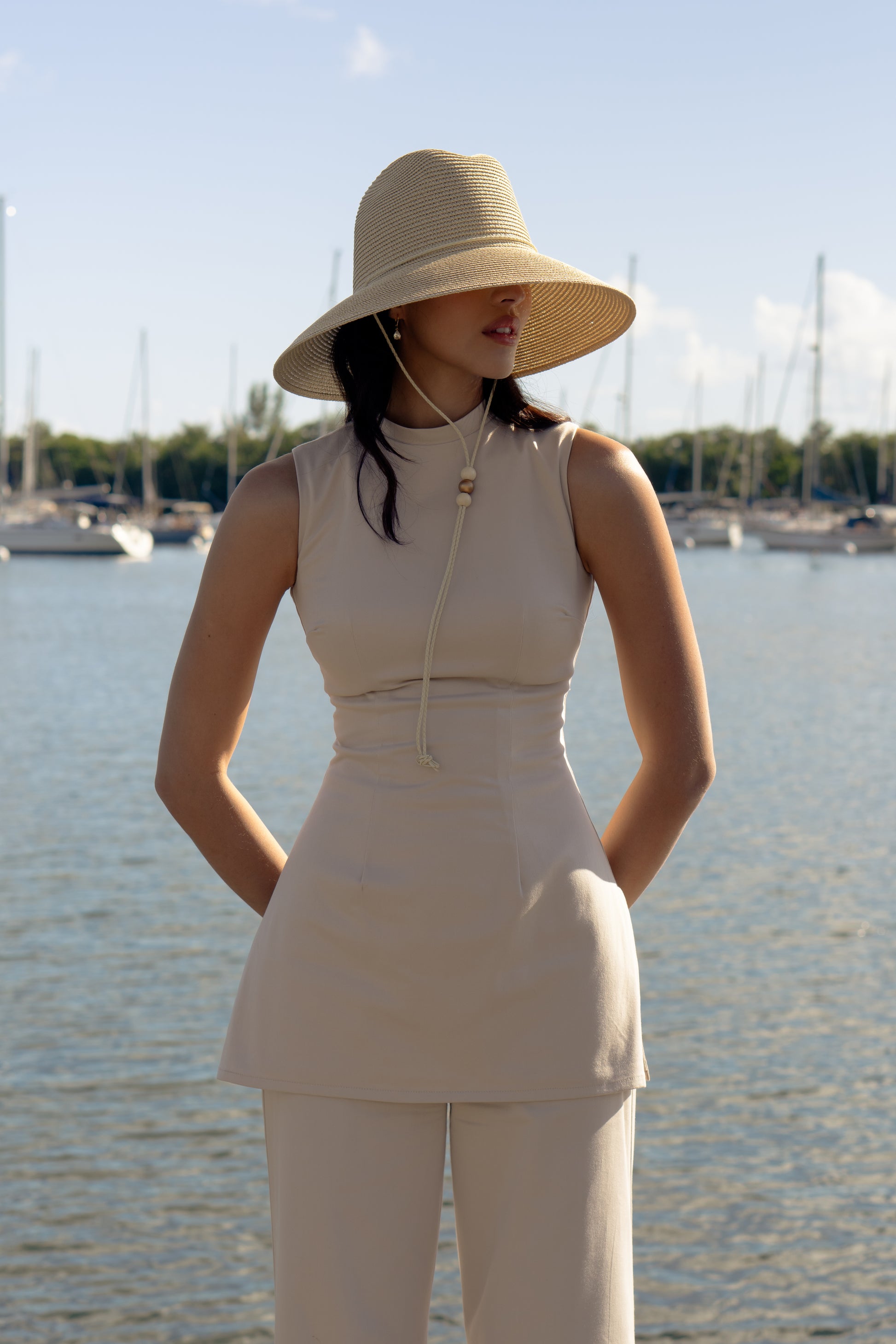 The Grove Tunic features a unique longline silhouette with side slits, offering a structured fit that enhances the feminine shape. Designed with a mock neck to elevate your look, it transitions effortlessly from casual to polished. Finished with an invisible back zipper for a seamless appearance.